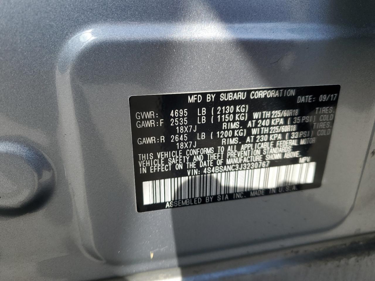 - ВИН: 4S4BSANC3J3******