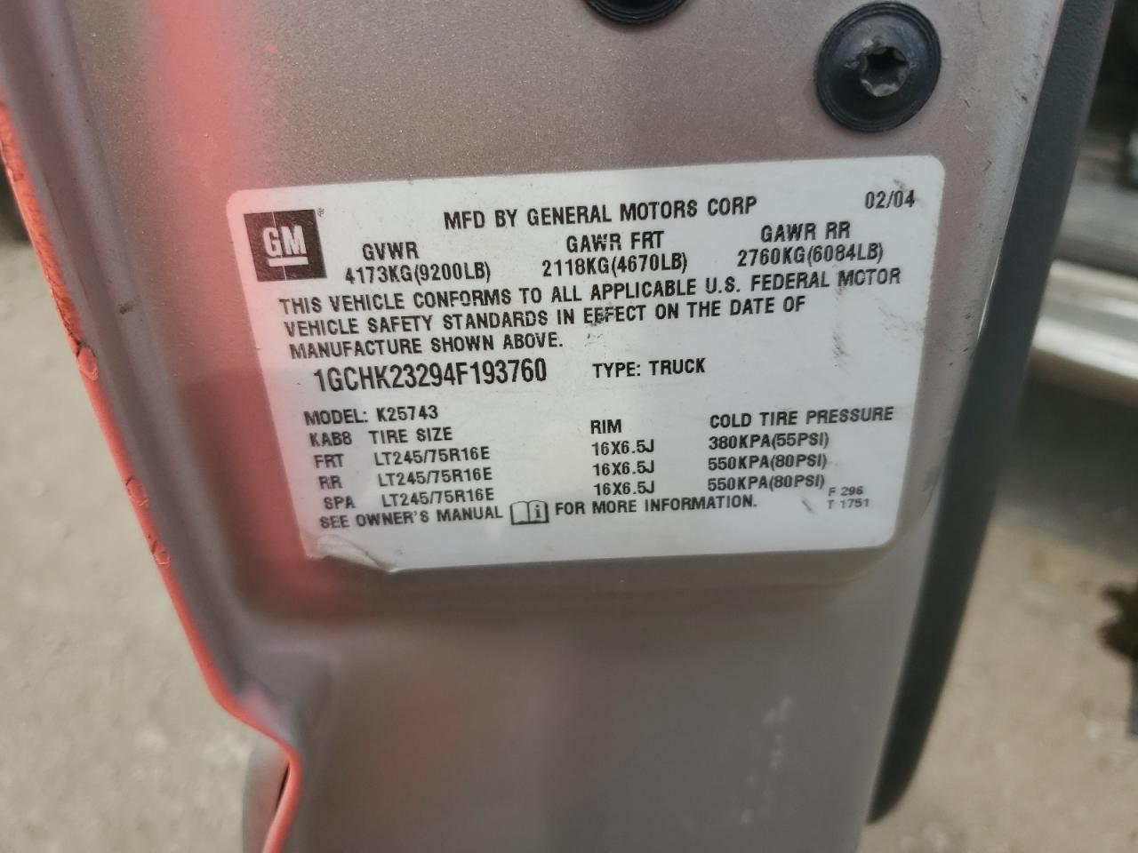 - ВИН: 1GCHK23294F******
