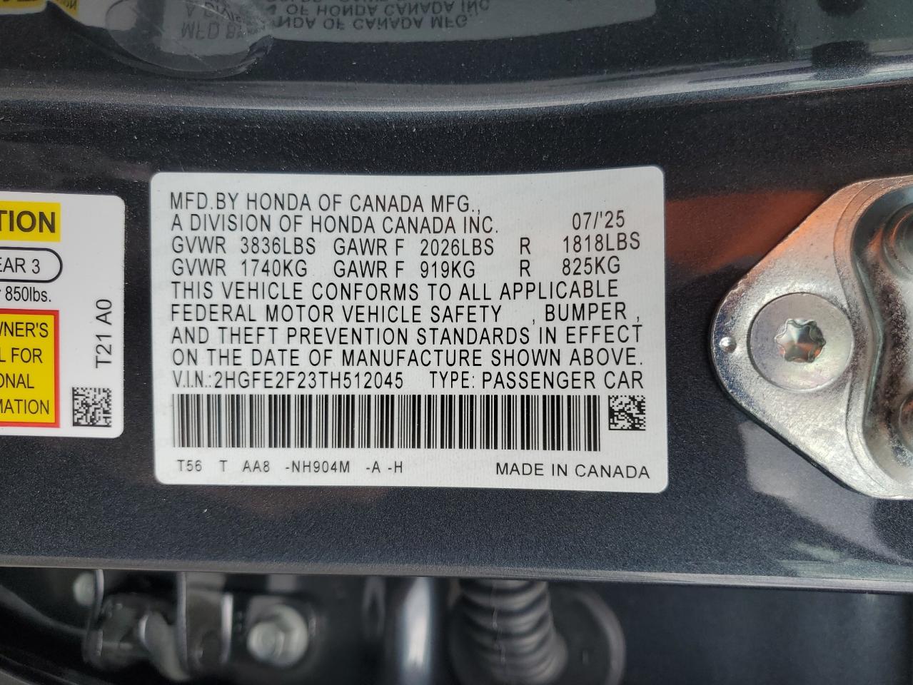 - ВИН: 2HGFE2F23TH******