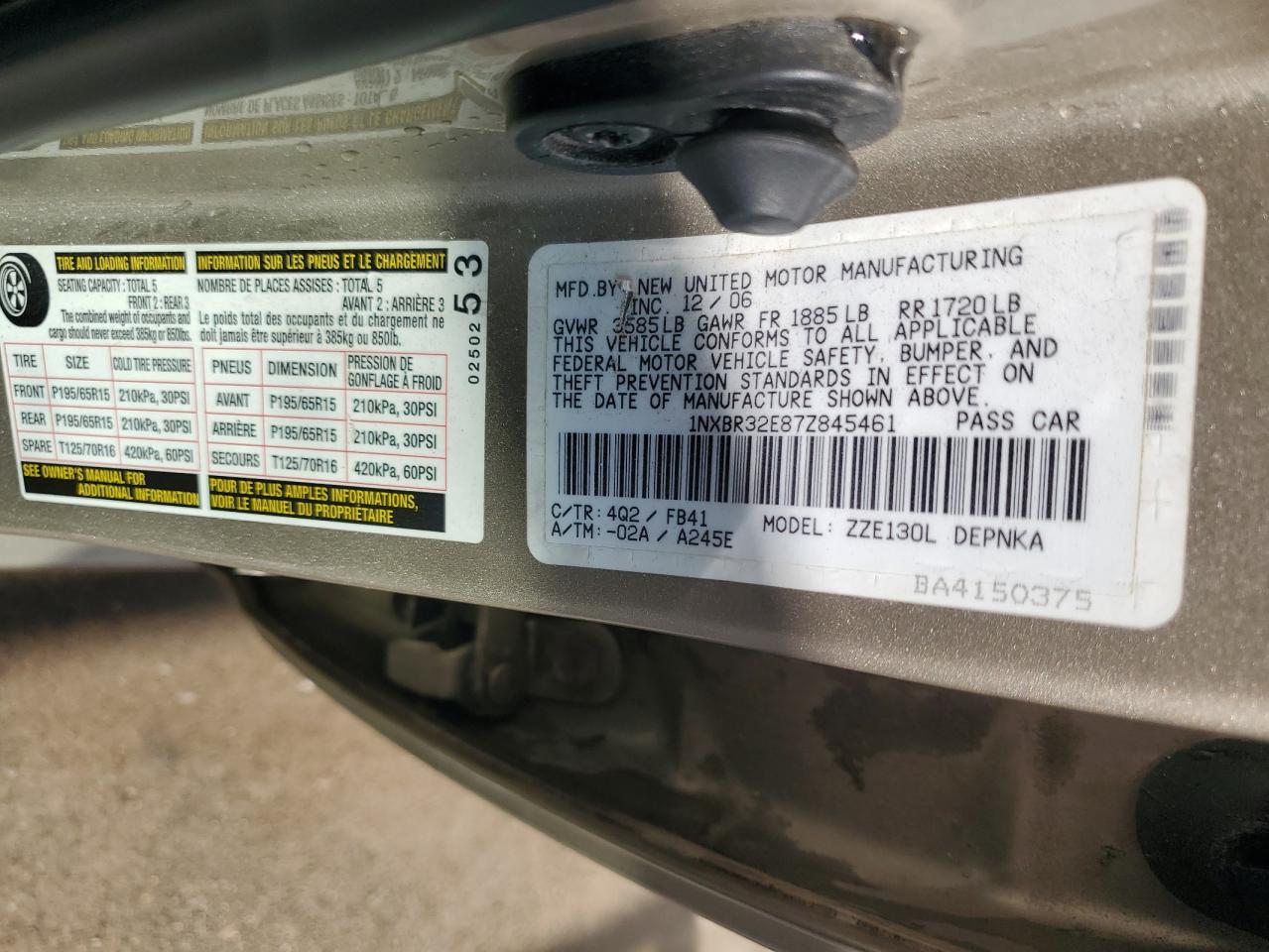 - ВИН: 1NXBR32E87Z******