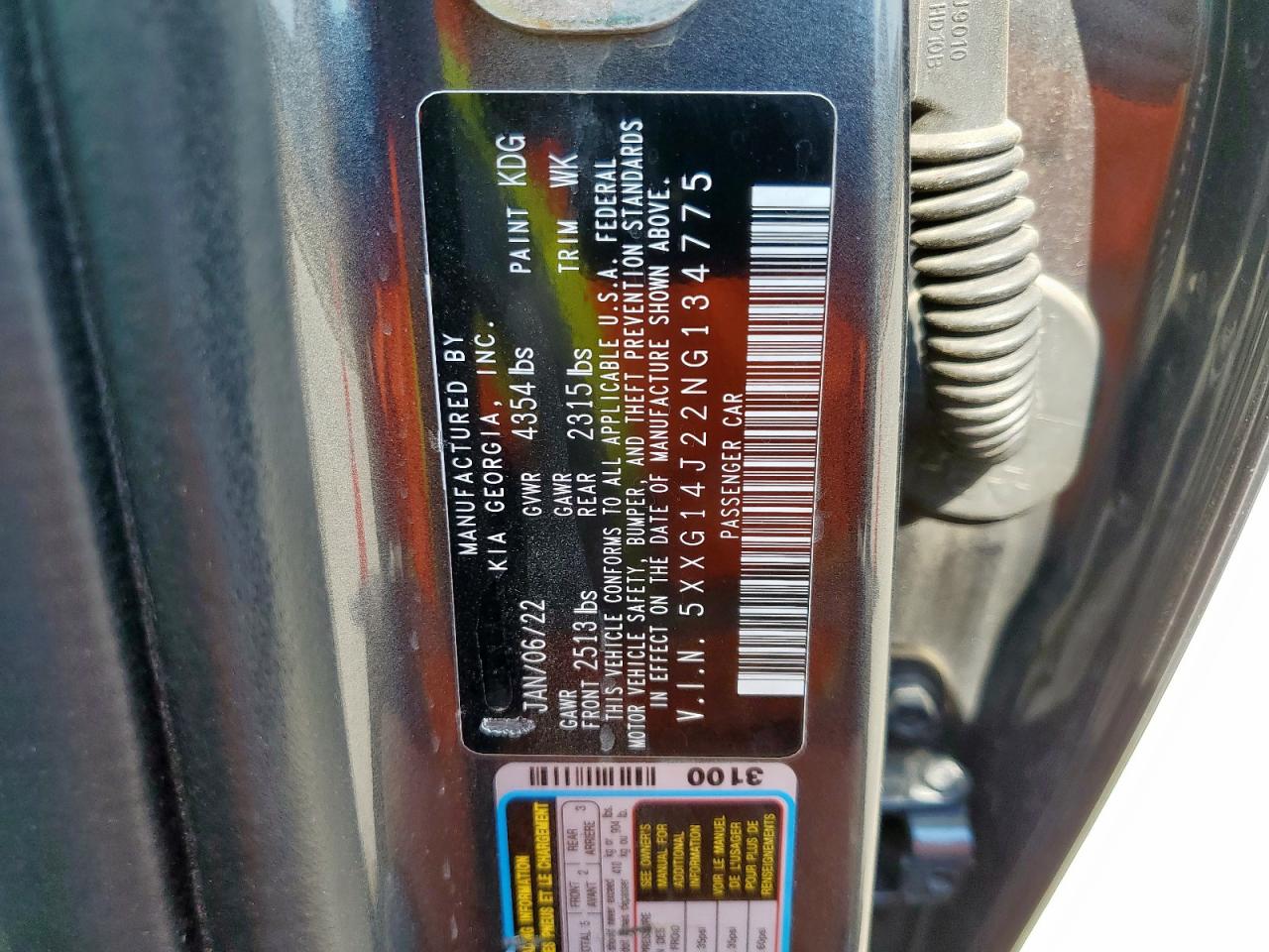 - ВИН: 5XXG14J22NG******