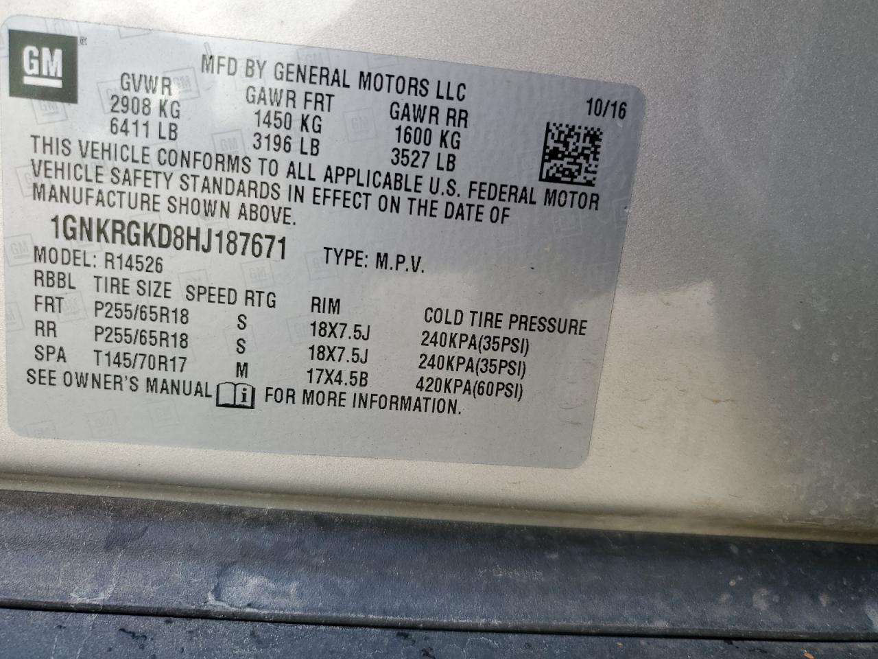 - ВИН: 1GNKRGKD8HJ******