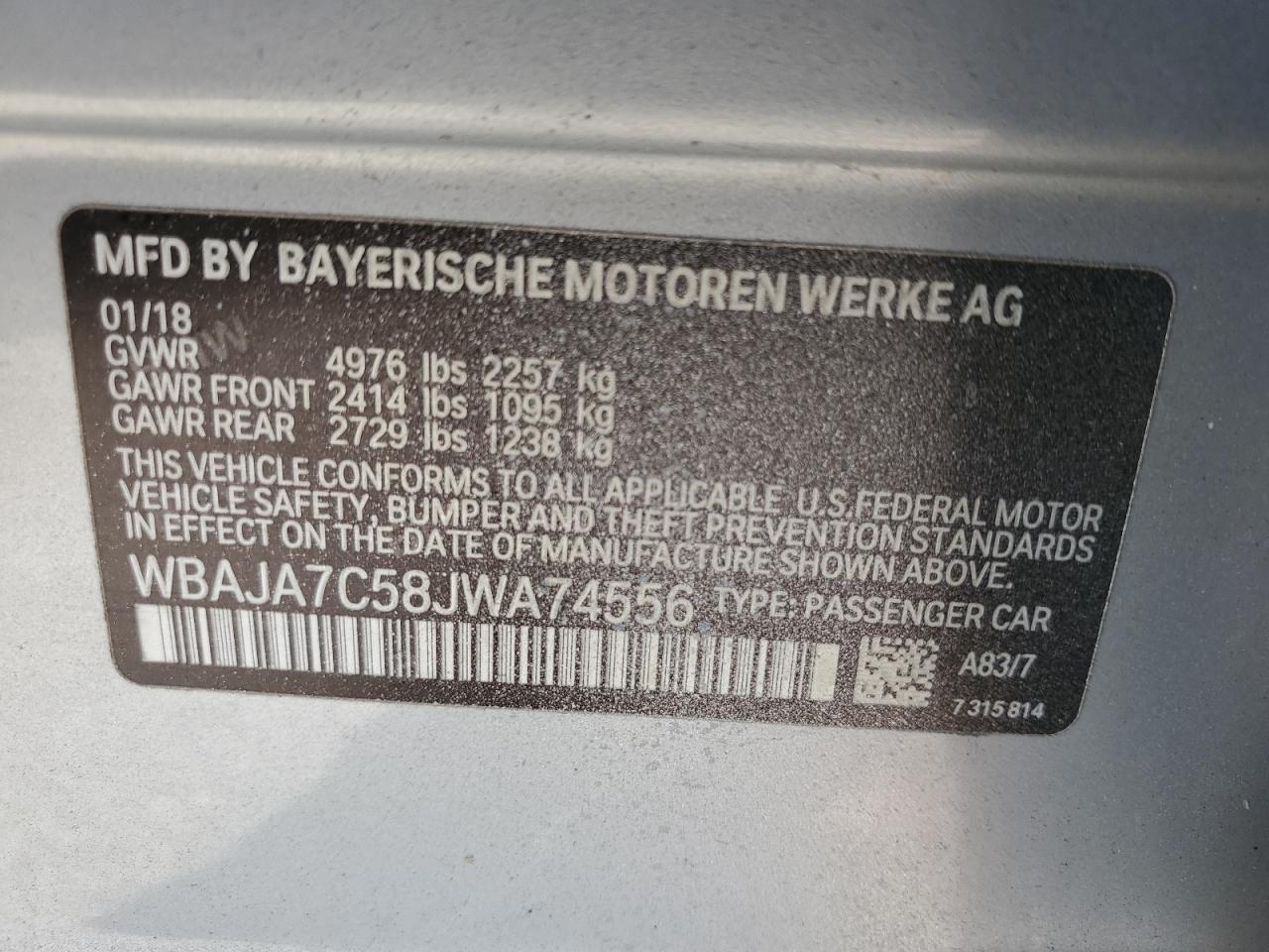 - ВИН: WBAJA7C58JW******