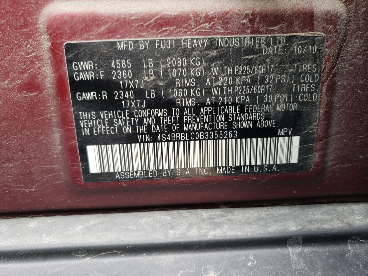 - ВИН: 4S4BRBLC0B3******