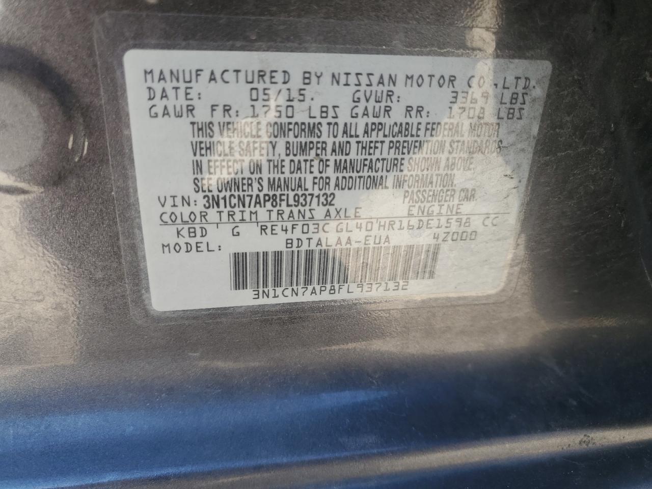 - ВИН: 3N1CN7AP8FL******