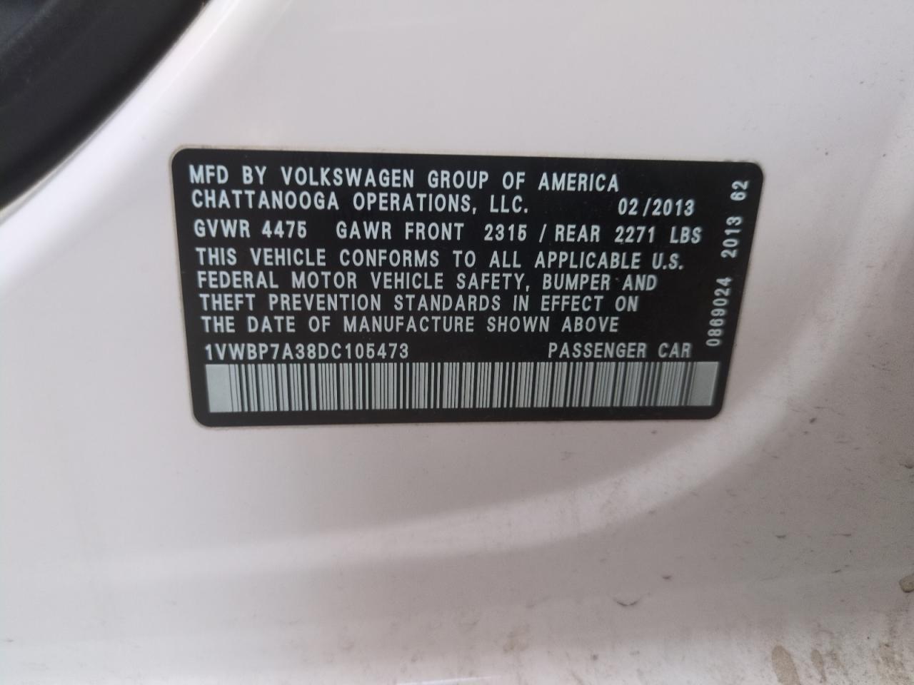- ВИН: 1VWBP7A38DC******