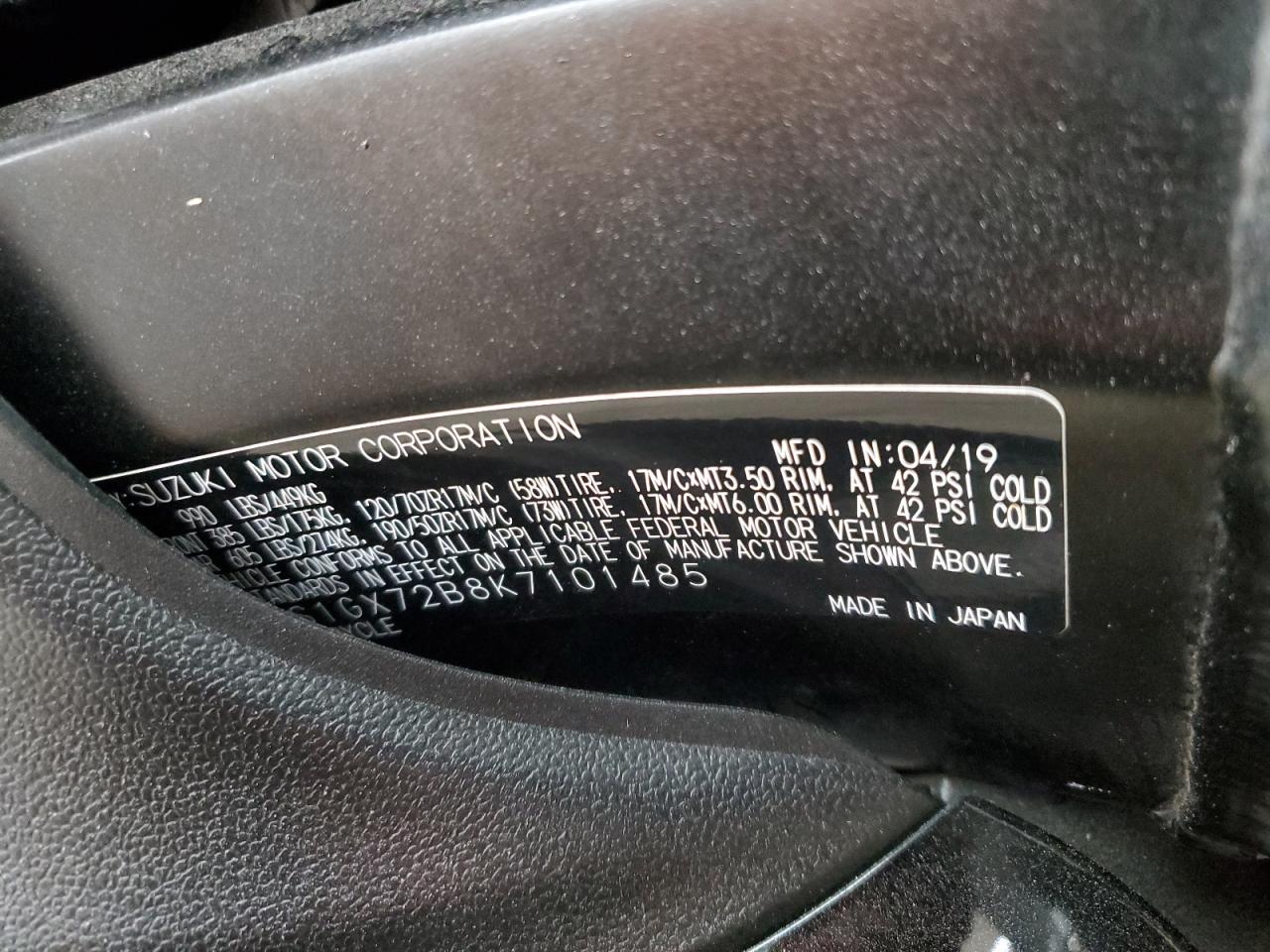 - ВИН: JS1GX72B8K7******