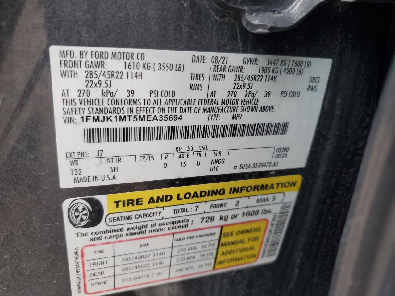 - ВИН: 1FMJK1MT5ME******