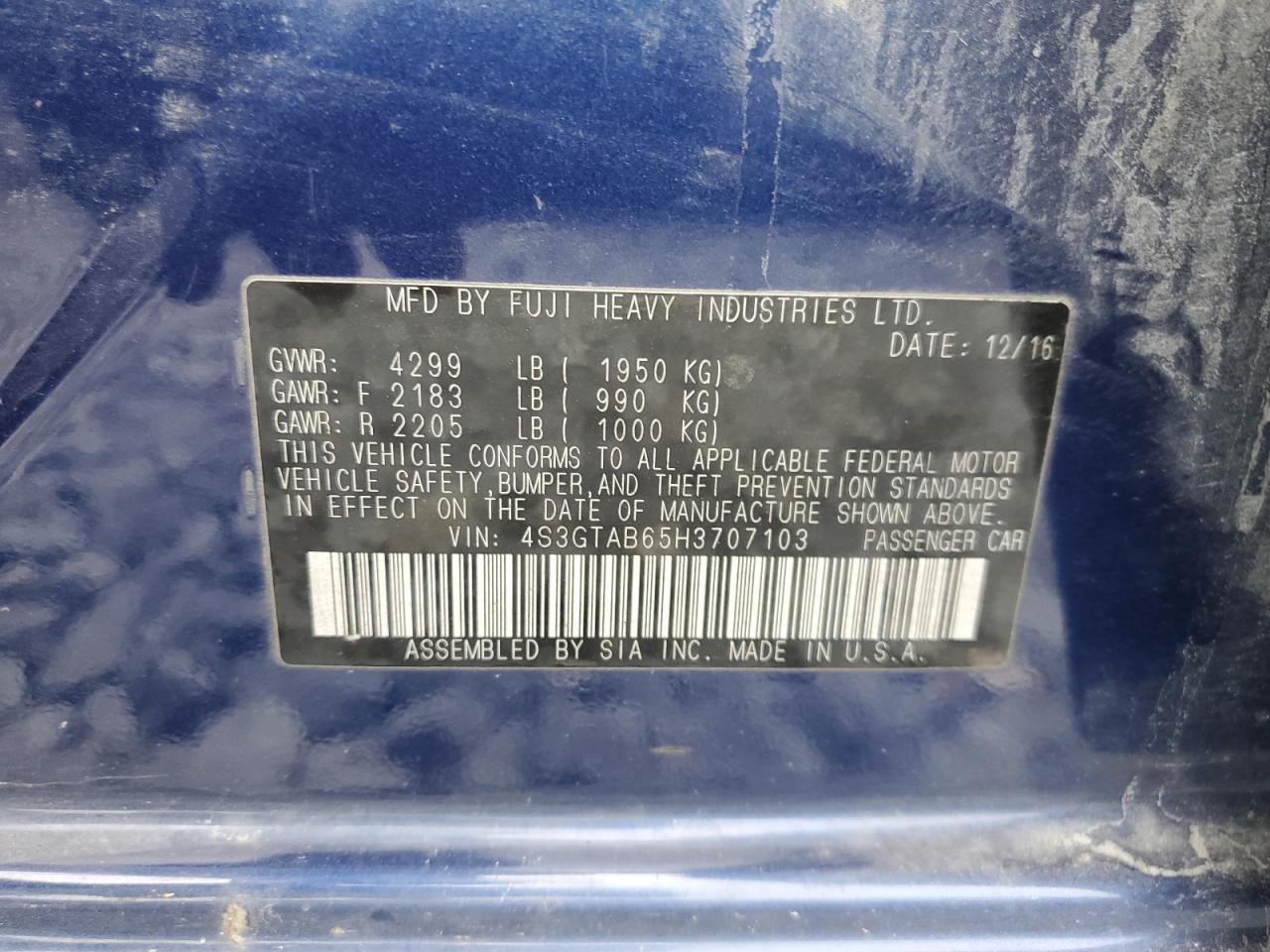 - ВИН: 4S3GTAB65H3******