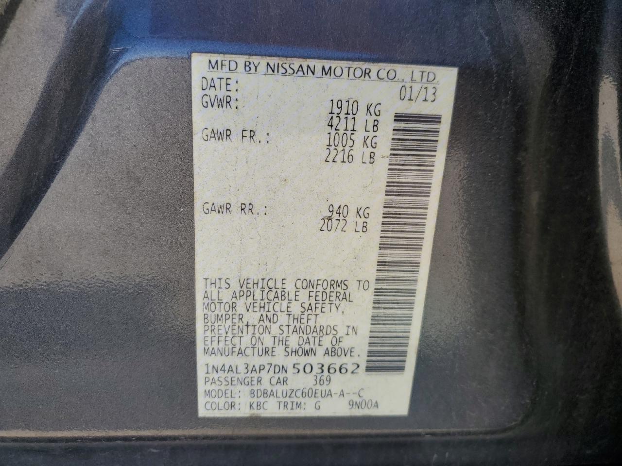 - ВИН: 1N4AL3AP7DN******