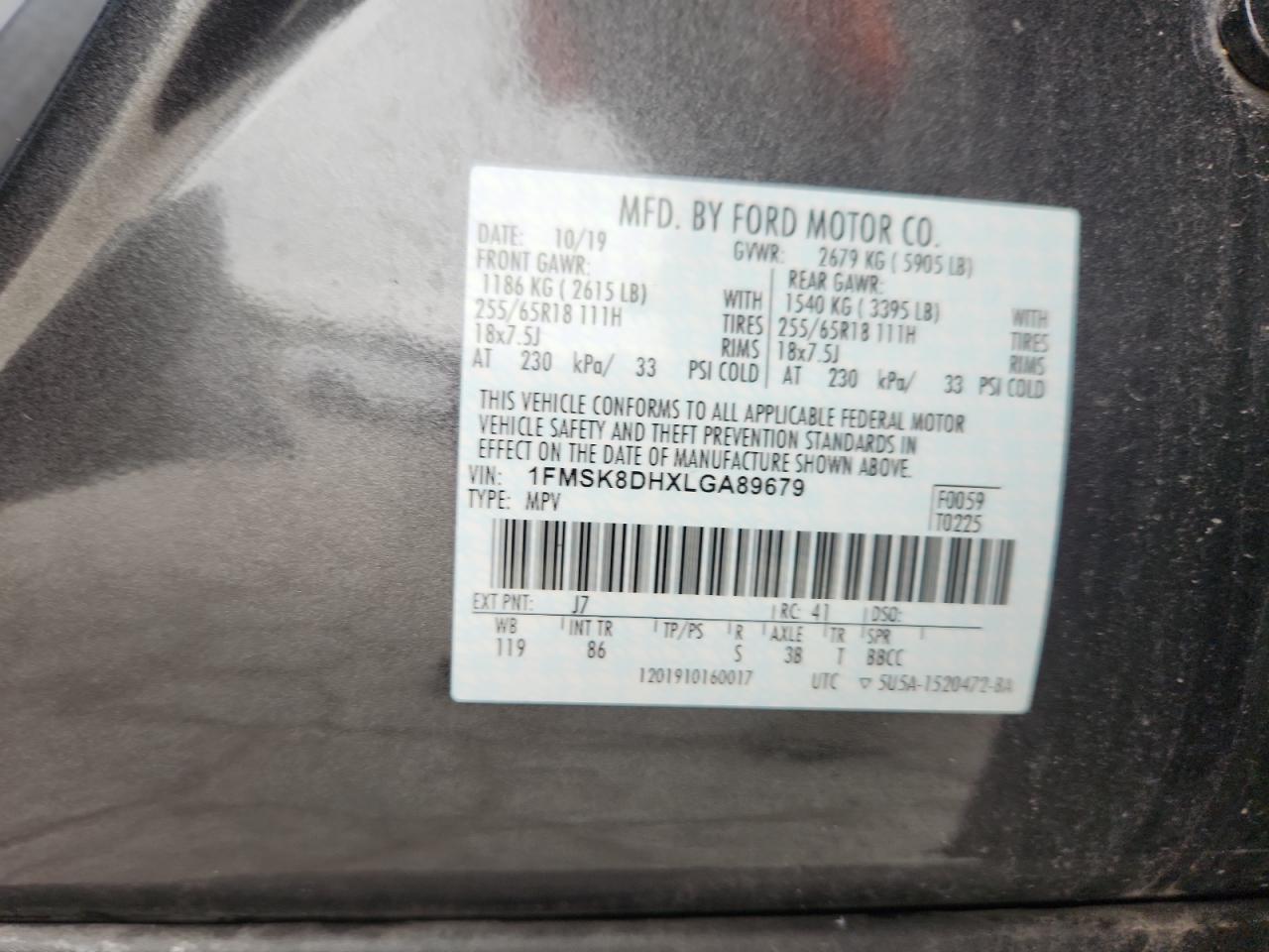 - ВИН: 1FMSK8DHXLG******