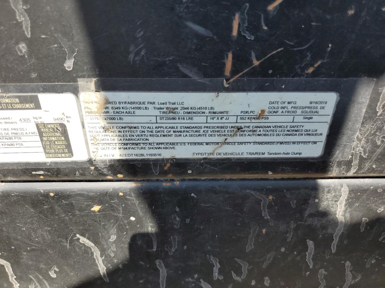 2020 LOAD TRAIL TANDEM AXLE DUMP TRAILER из США