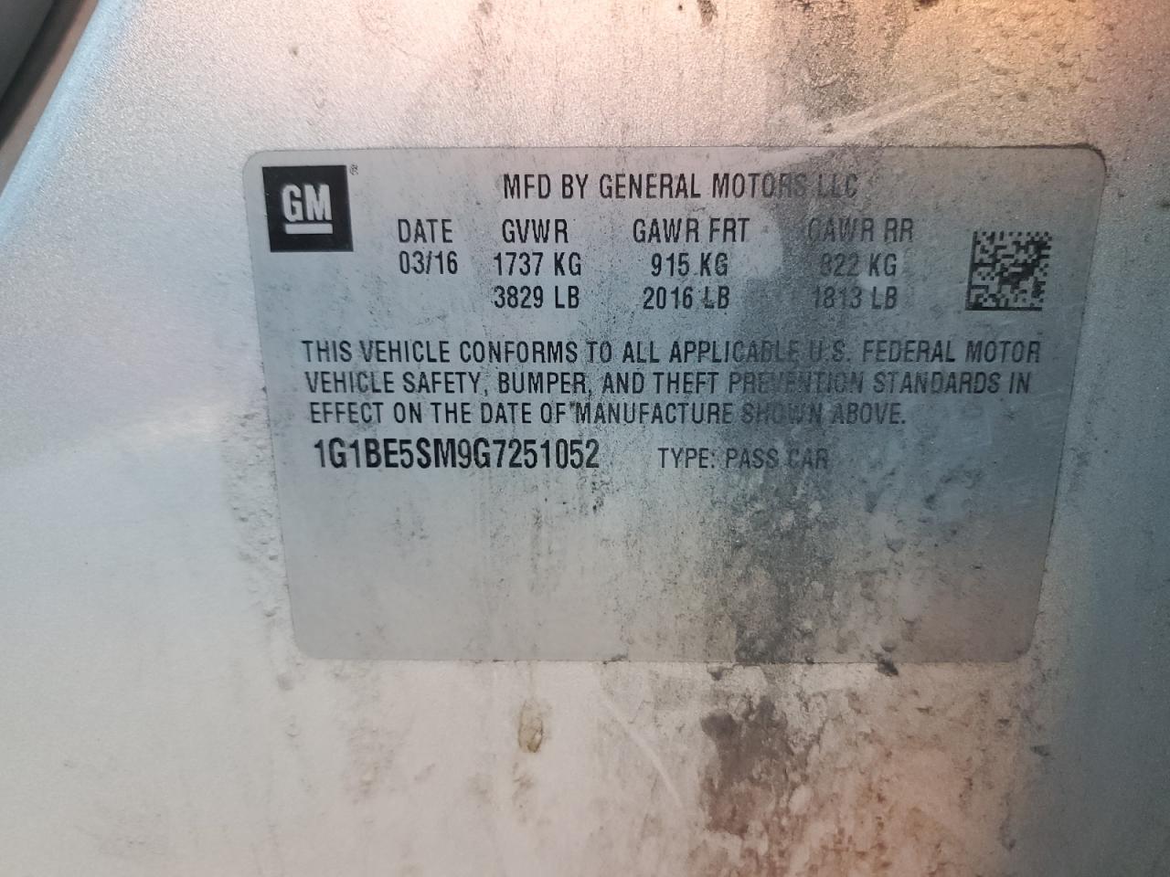 - ВИН: 1G1BE5SM9G7******