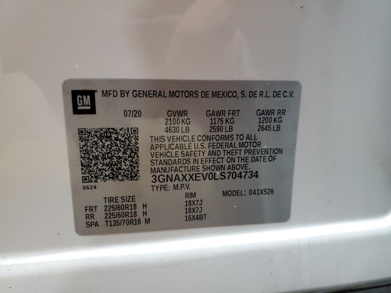- ВИН: 3GNAXXEV0LS******