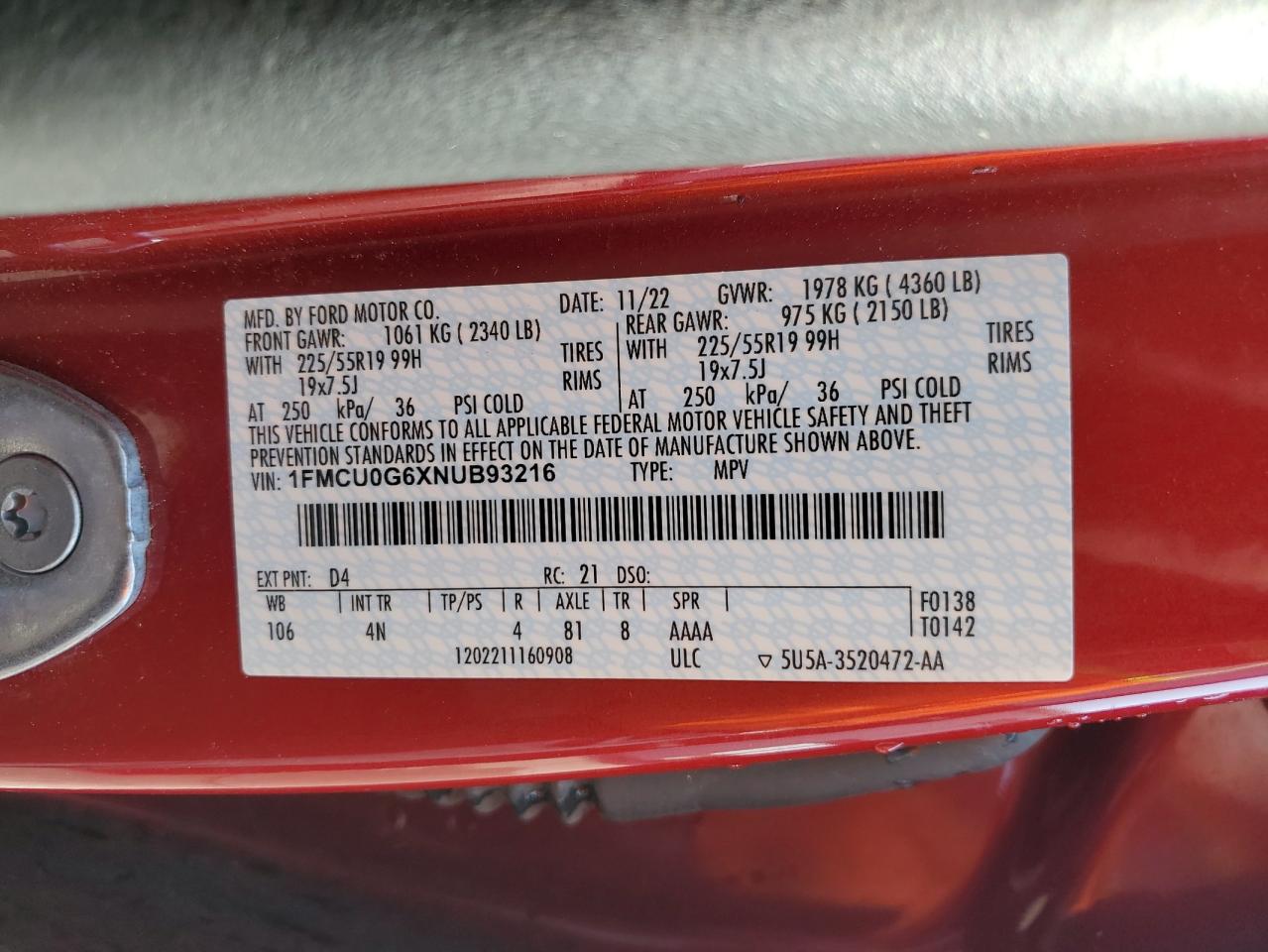 - ВИН: 1FMCU0G6XNU******