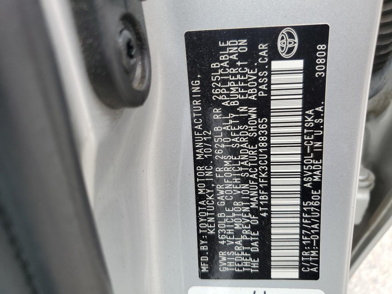 - ВИН: 4T1BF1FK3CU******