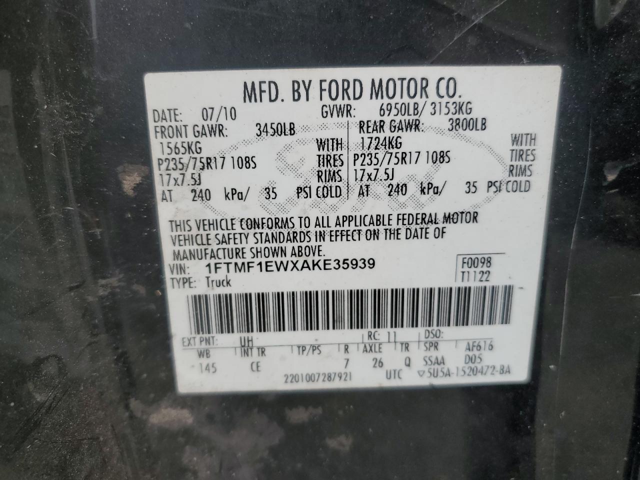 - ВИН: 1FTMF1EWXAK******