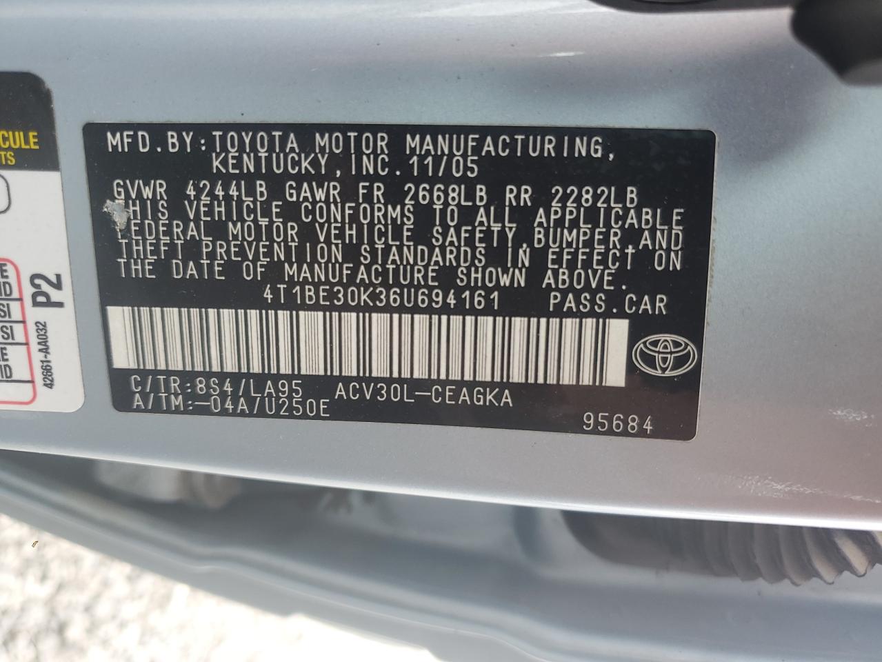 - ВИН: 4T1BE30K36U******