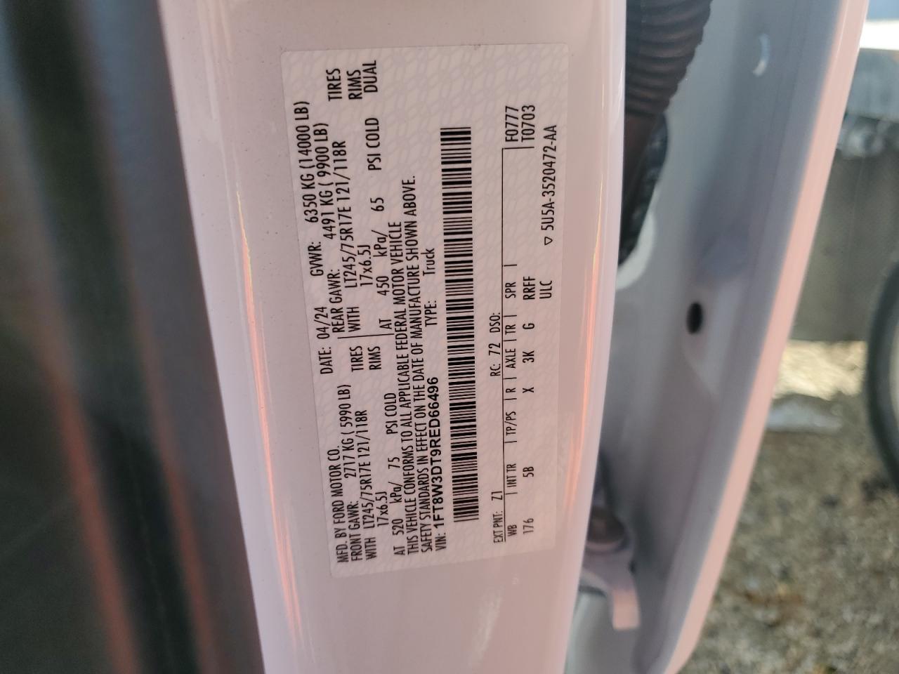 - ВИН: 1FT8W3DT9RE******