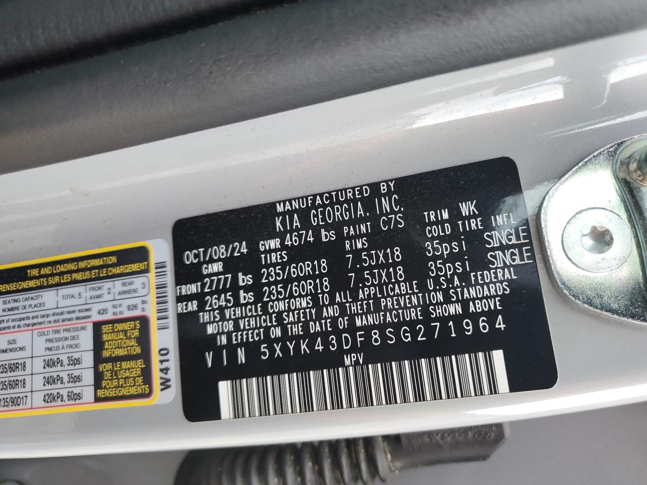 - ВИН: 5XYK43DF8SG******