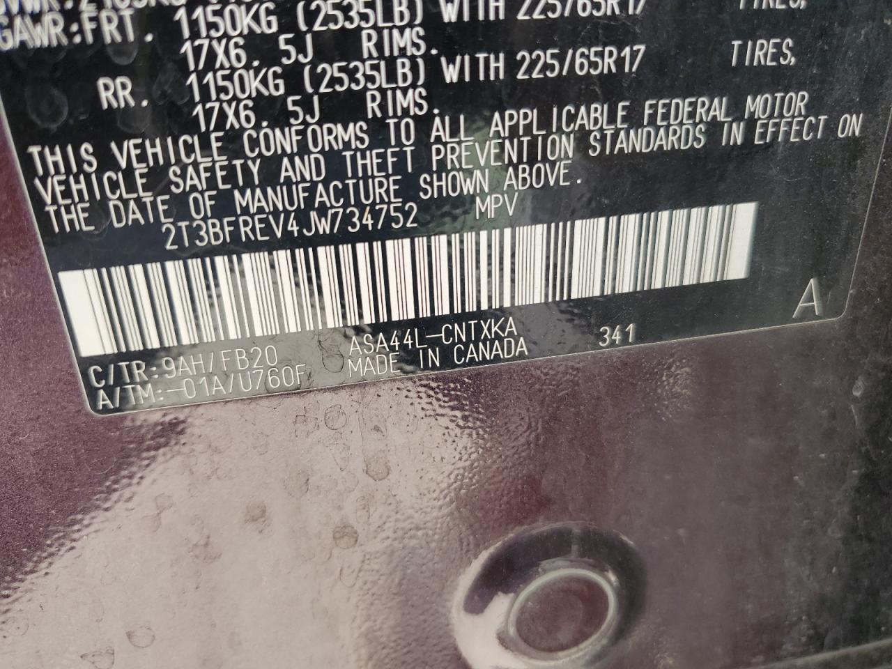 - ВИН: 2T3BFREV4JW******