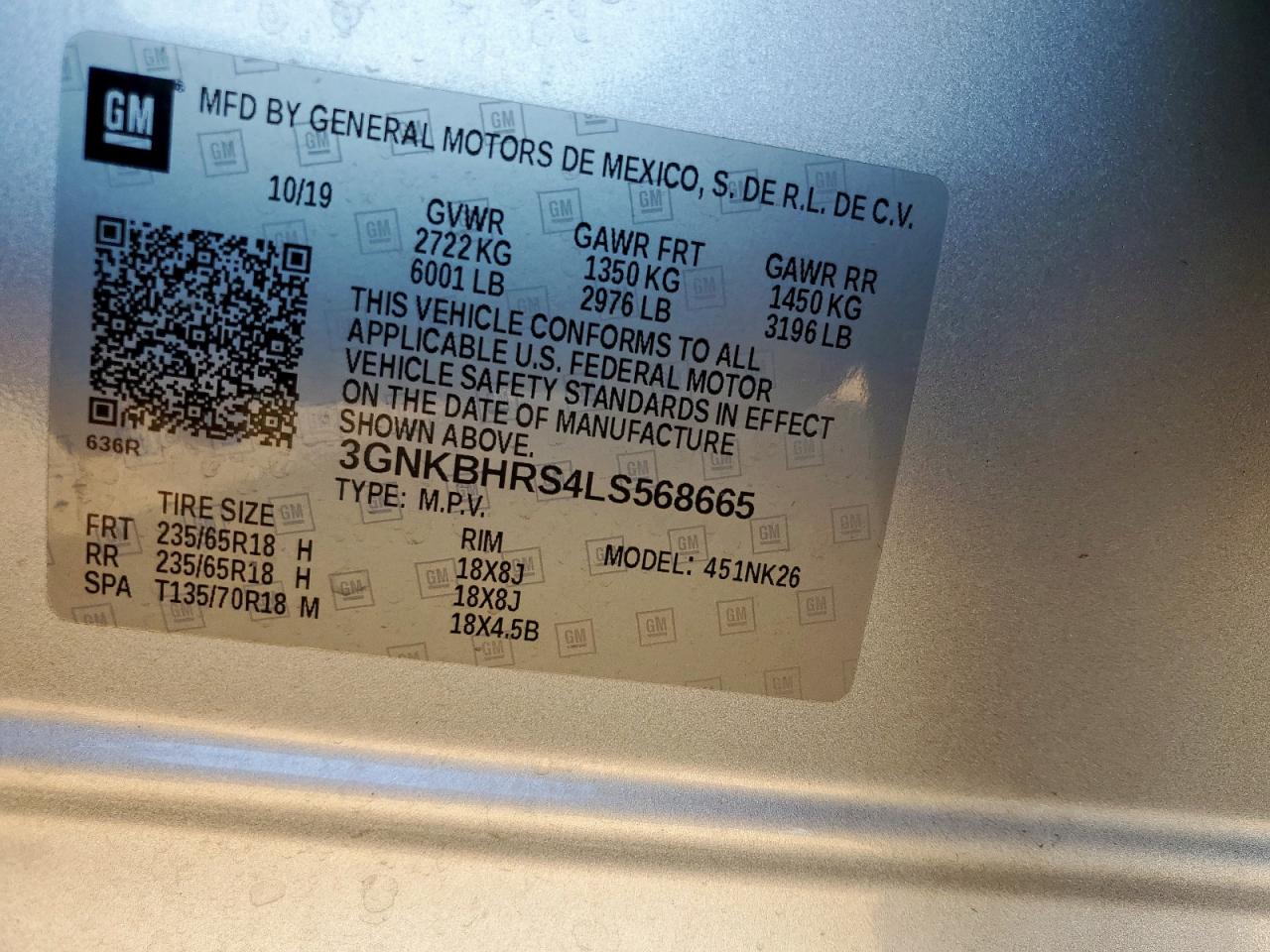 - ВИН: 3GNKBHRS4LS******