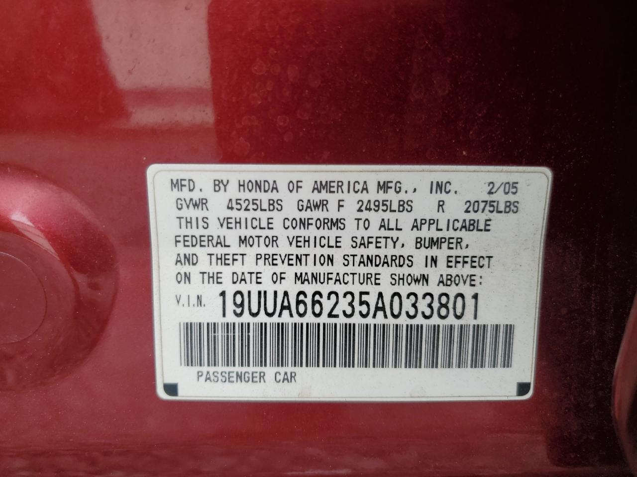 - ВИН: 19UUA66235A******