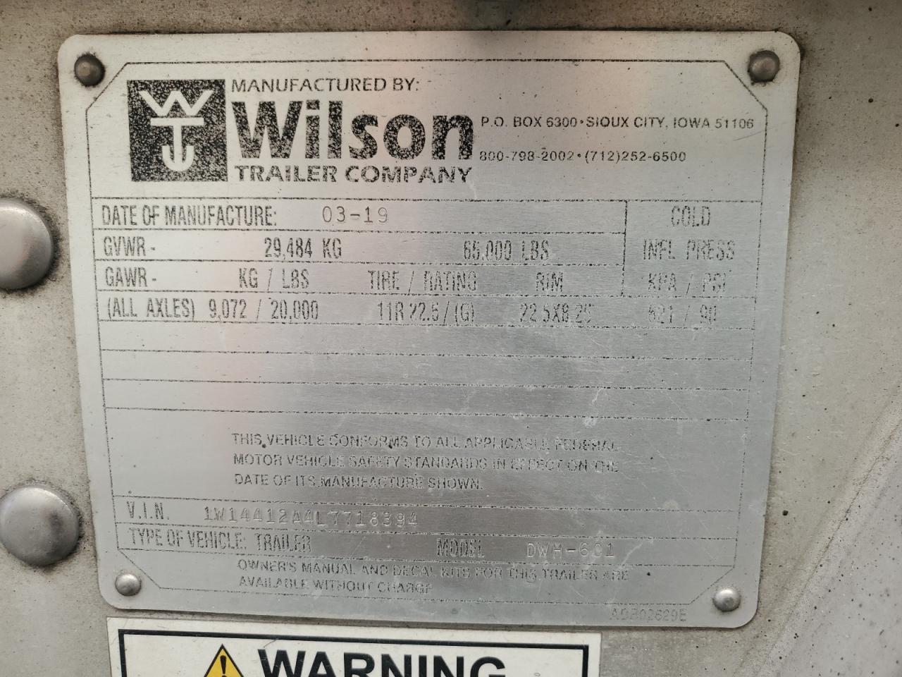 2020 WILSON DWH-601 GRAIN TRAILER из США