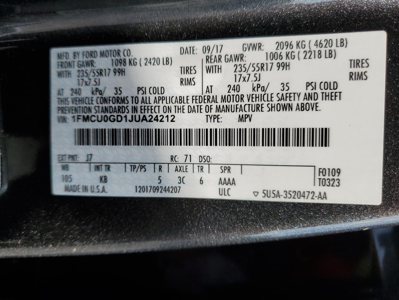 - ВИН: 1FMCU0GD1JU******