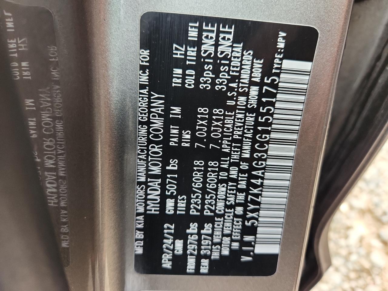 - ВИН: 5XYZK4AG3CG******