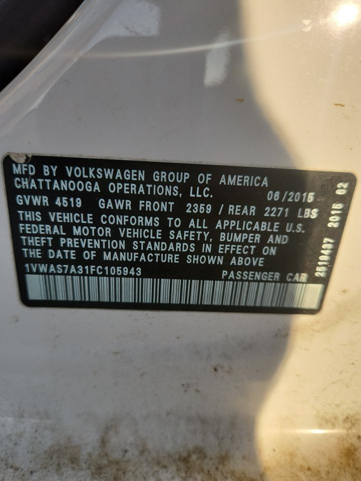 2015 VOLKSWAGEN PASSAT S из США