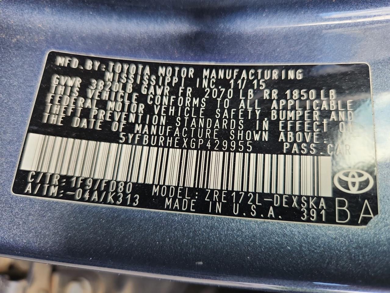 2016 TOYOTA COROLLA L из США