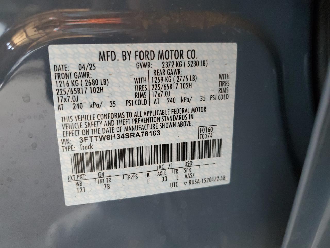 - ВИН: 3FTTW8H34SR******