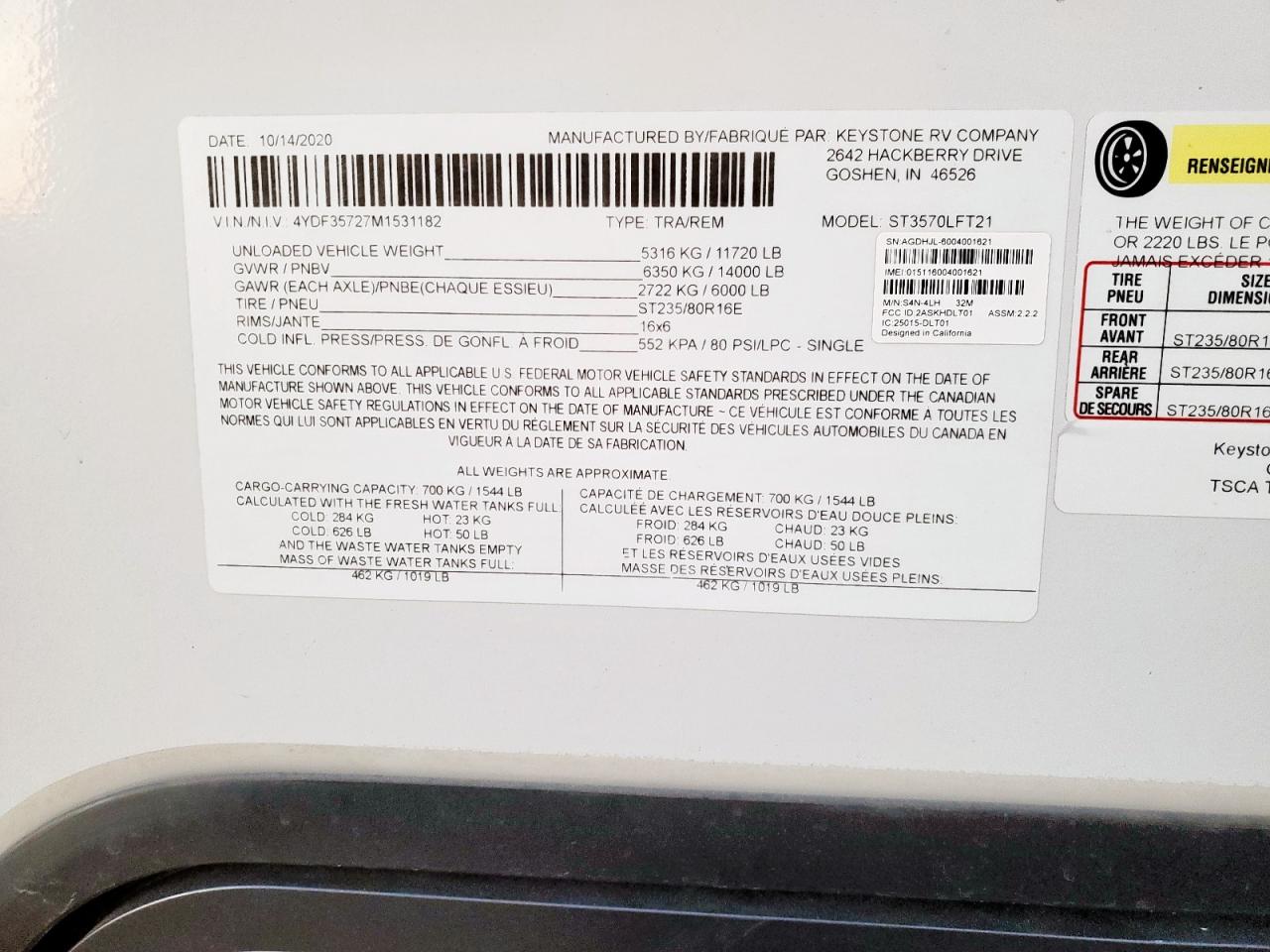 - ВИН: 4YDF35727M1******