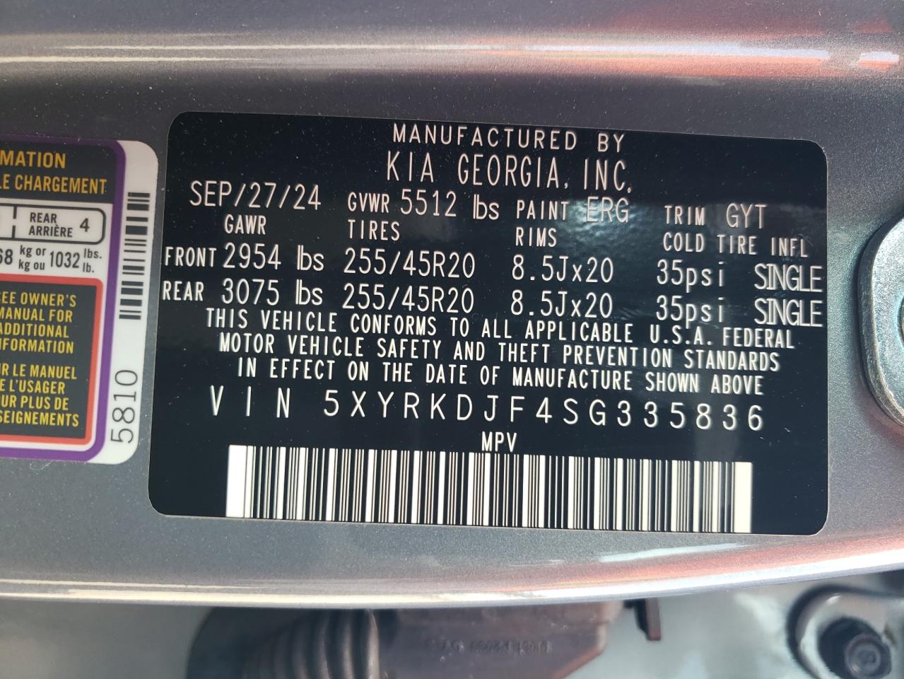 - ВИН: 5XYRKDJF4SG******