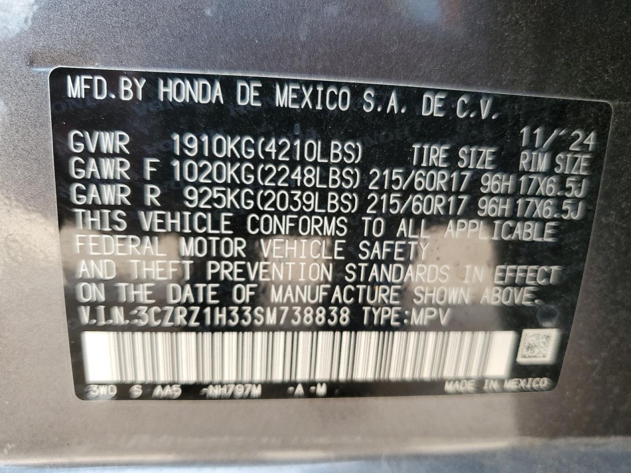 2025 HONDA HR-V LX из США