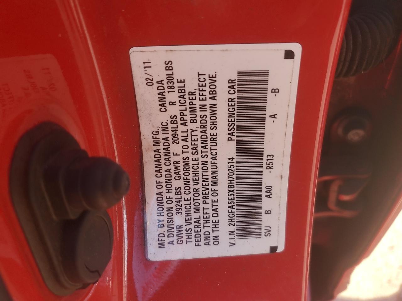 - ВИН: 2HGFA5E5XBH******