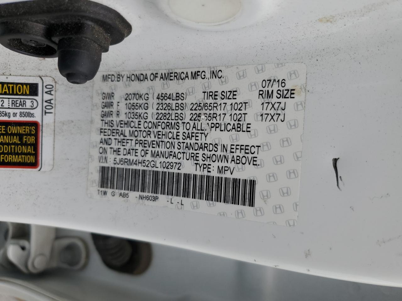 - ВИН: 5J6RM4H52GL******