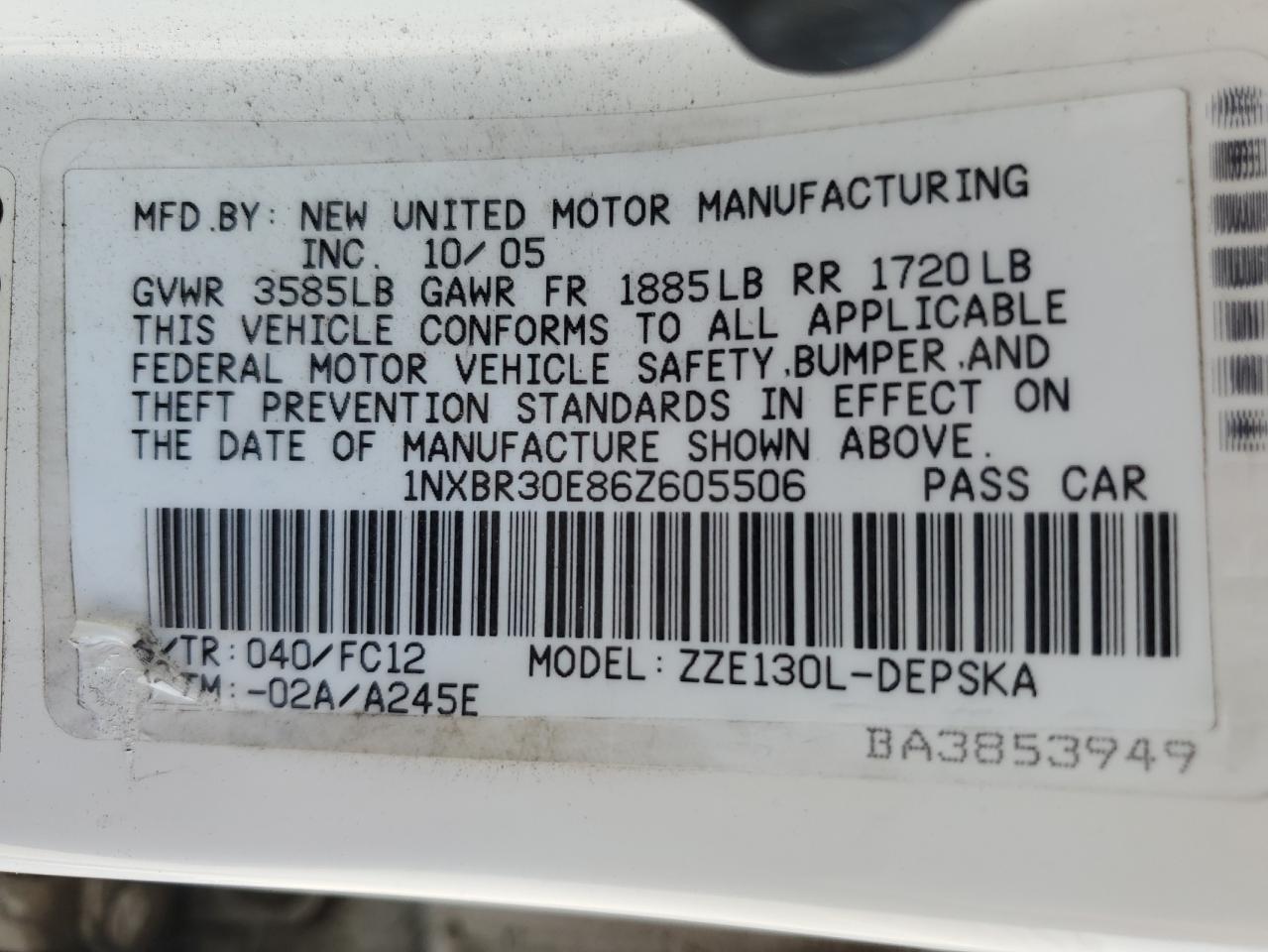 - ВИН: 1NXBR30E86Z******