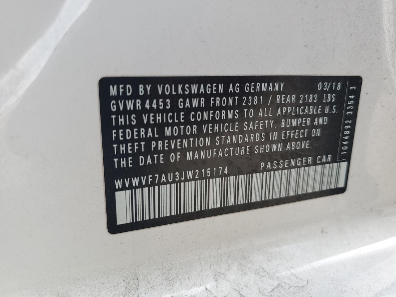 - ВИН: WVWVF7AU3JW******
