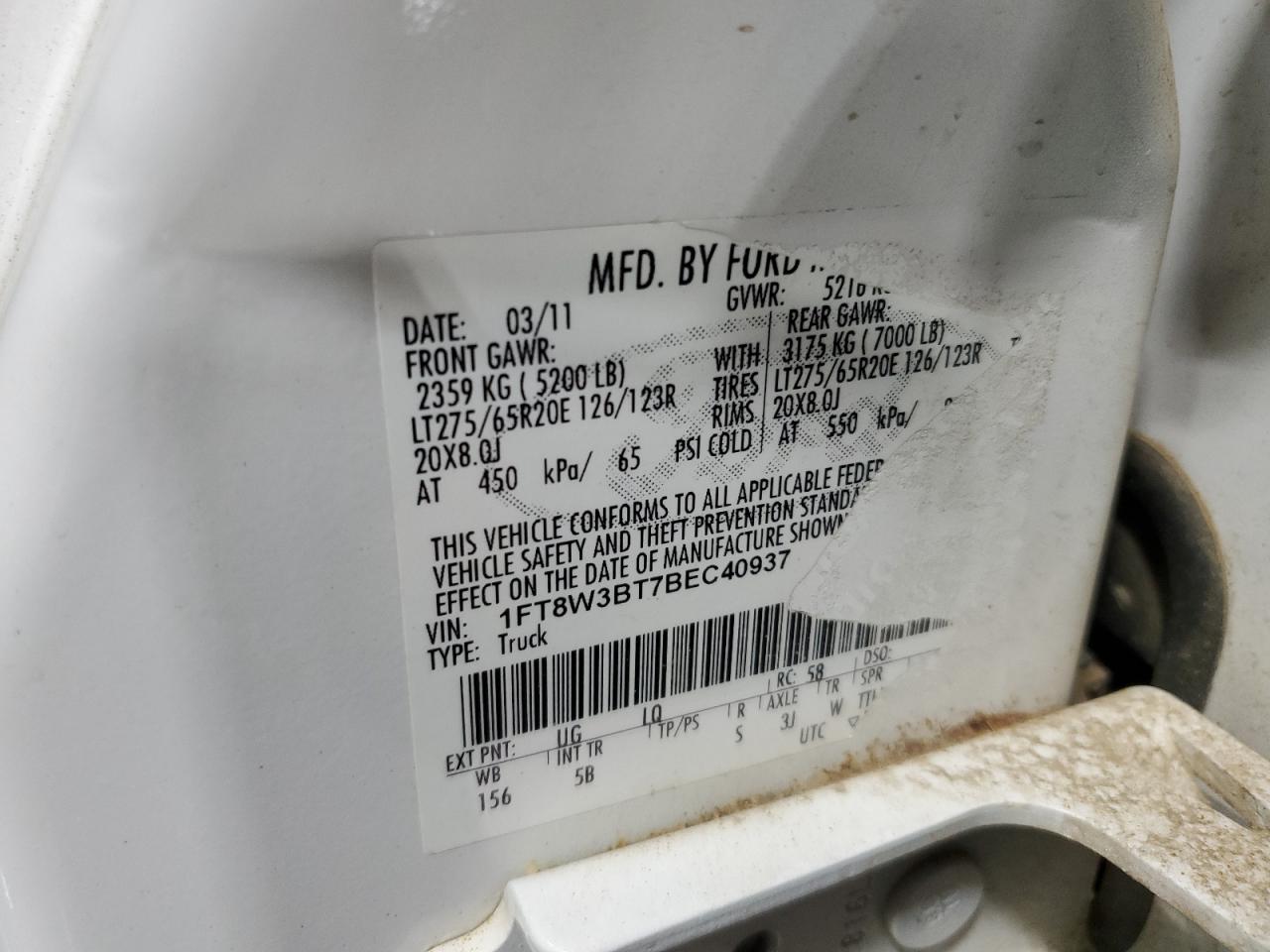 - ВИН: 1FT8W3BT7BE******