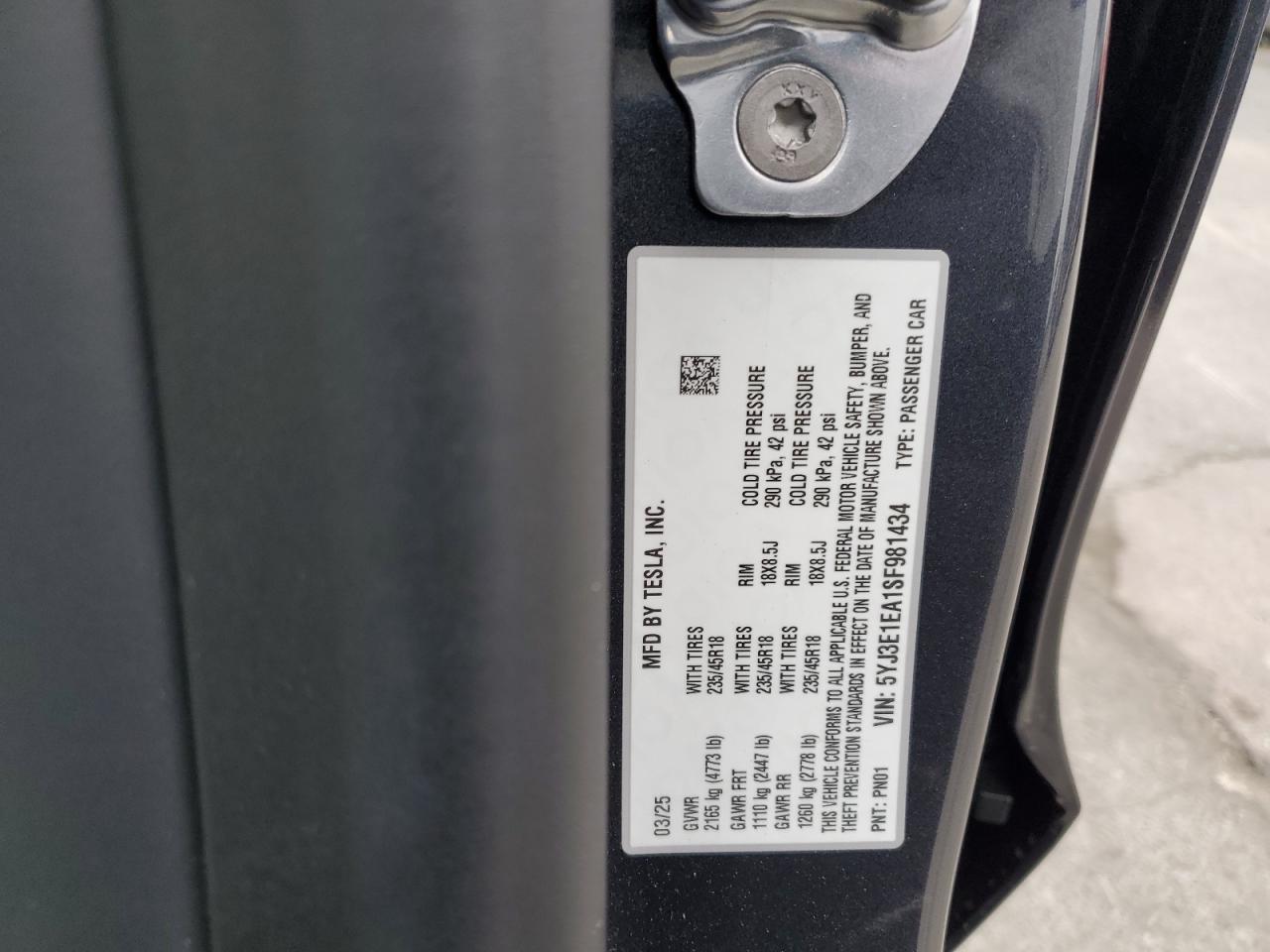 - ВИН: 5YJ3E1EA1SF******