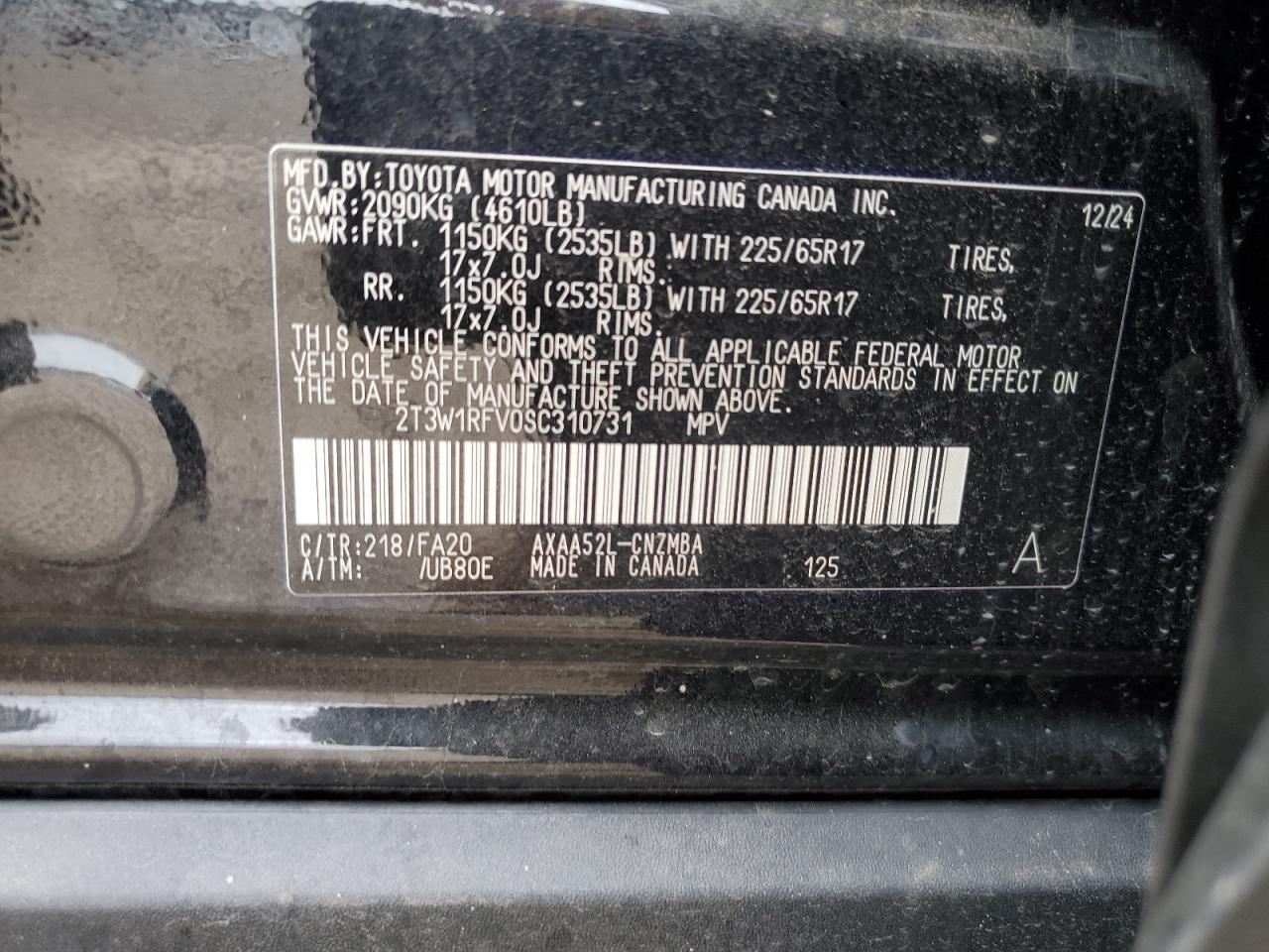 - ВИН: 2T3W1RFV0SC******