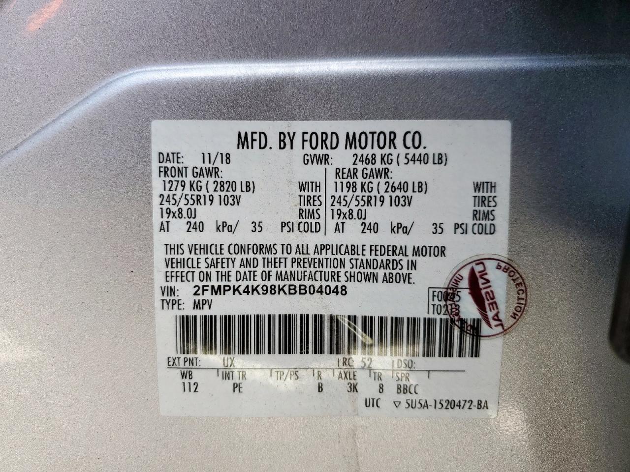 - ВИН: 2FMPK4K98KB******