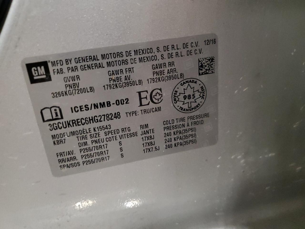 - ВИН: 3GCUKREC6HG******