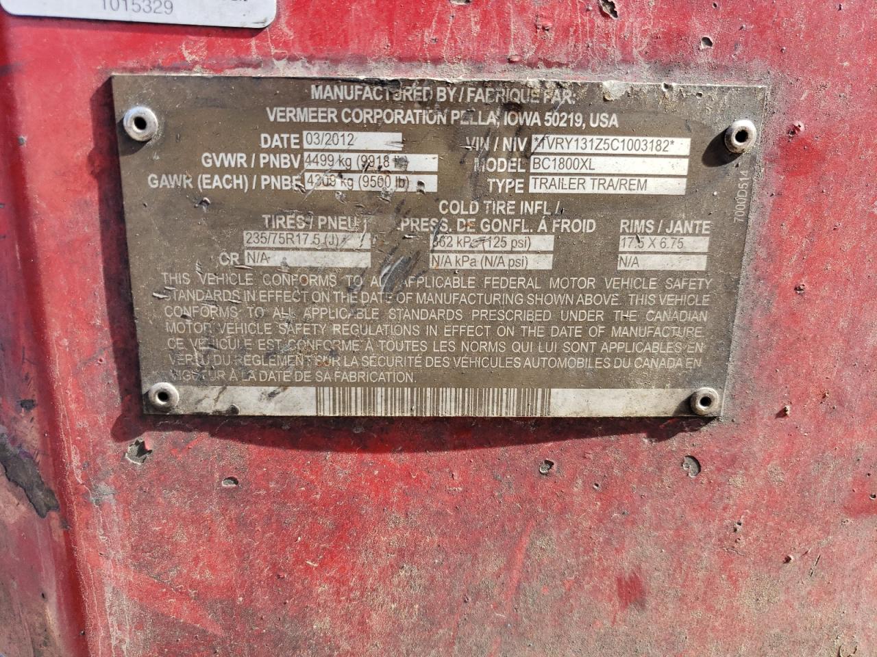 2012 VERMEER BC1800XL WOOD CHIPPER из США