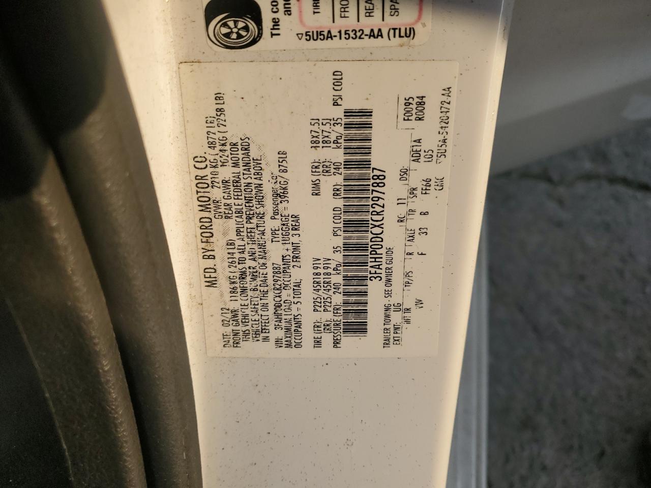 - ВИН: 3FAHP0DCXCR******