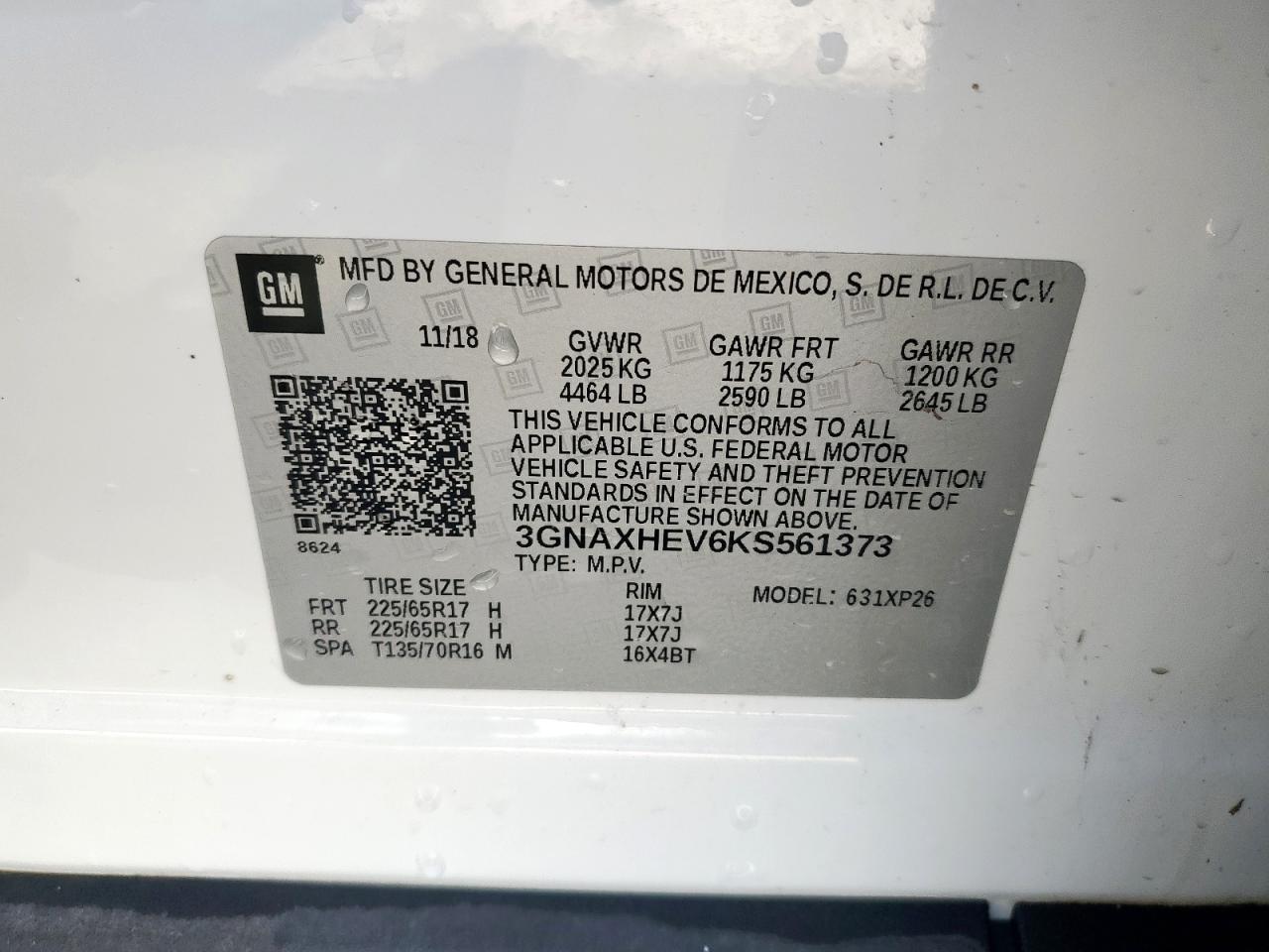 - ВИН: 3GNAXHEV6KS******