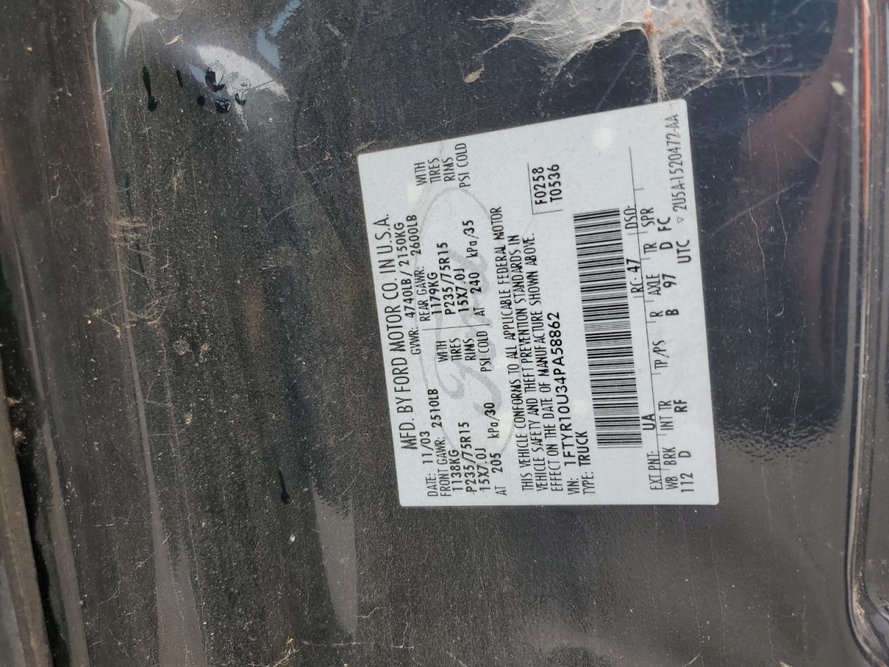 - ВИН: 1FTYR10U34P******