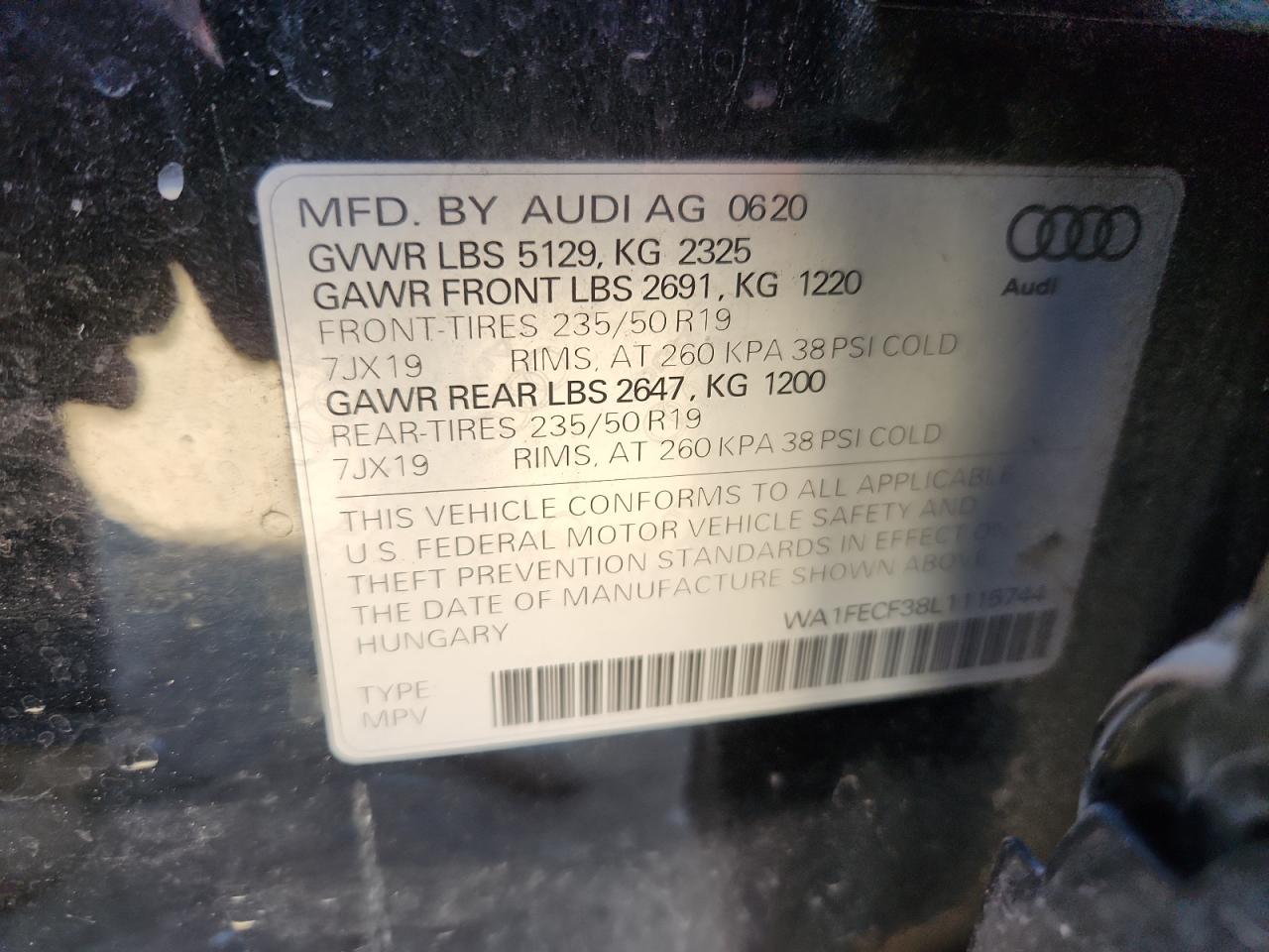 - ВИН: WA1FECF38L1******